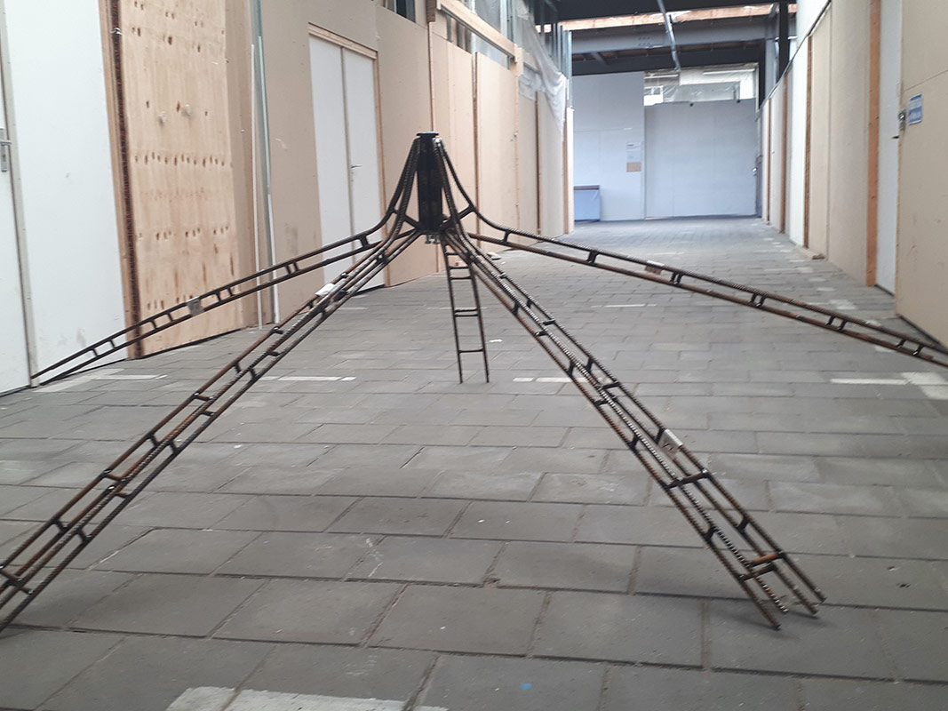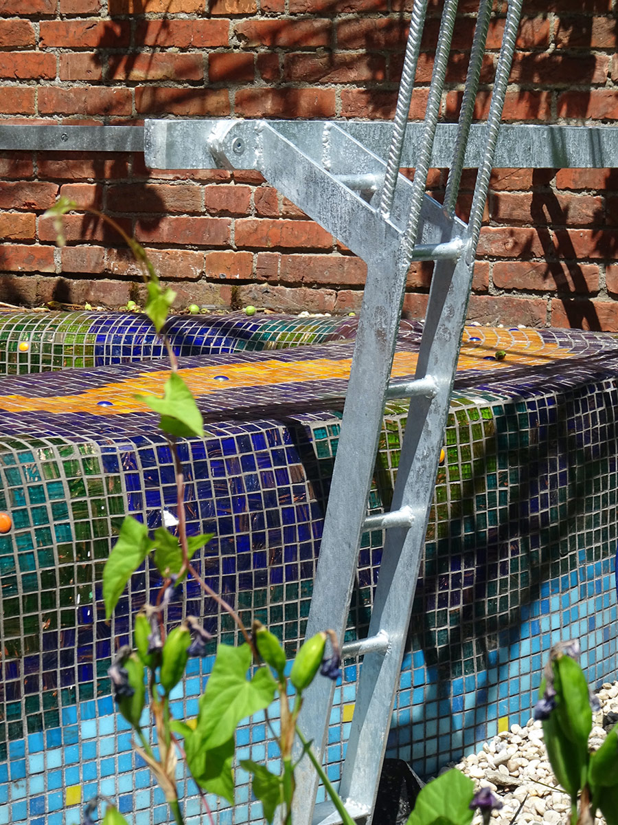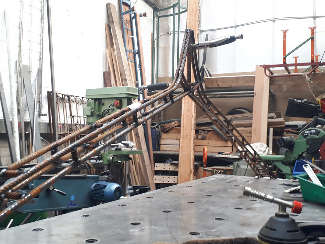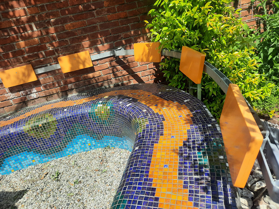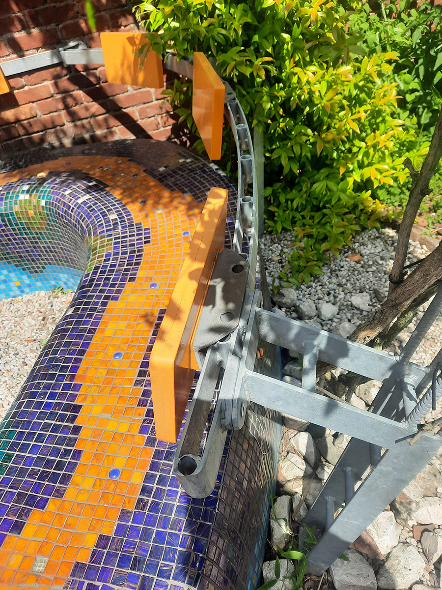 De Draak was er al, een pergola eroverheen voor begroeiing, en een rugleuning voor comfort.