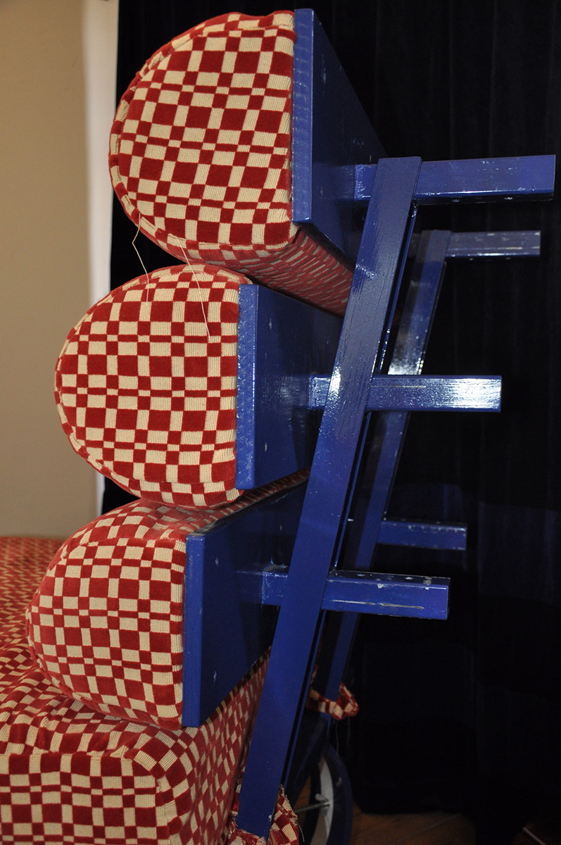 Stof, schuimrubber, staal, pvc en hout.