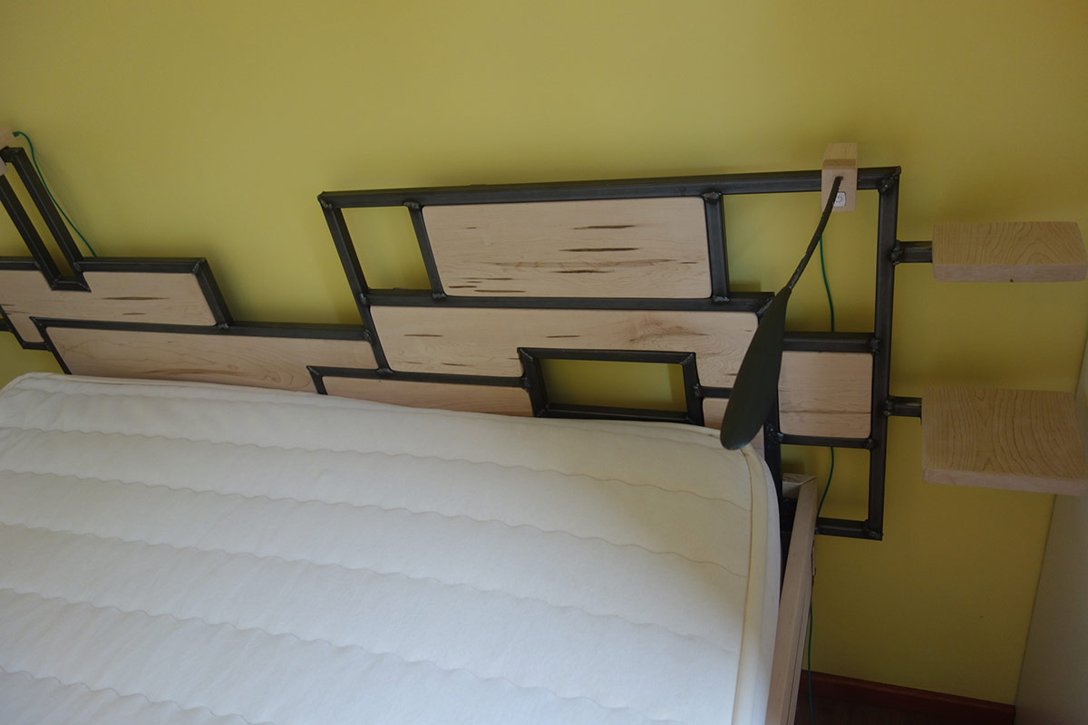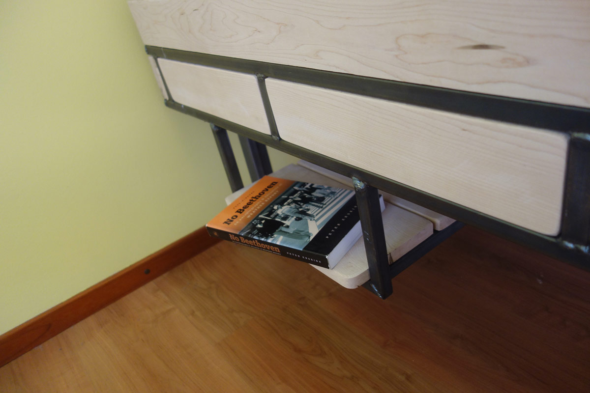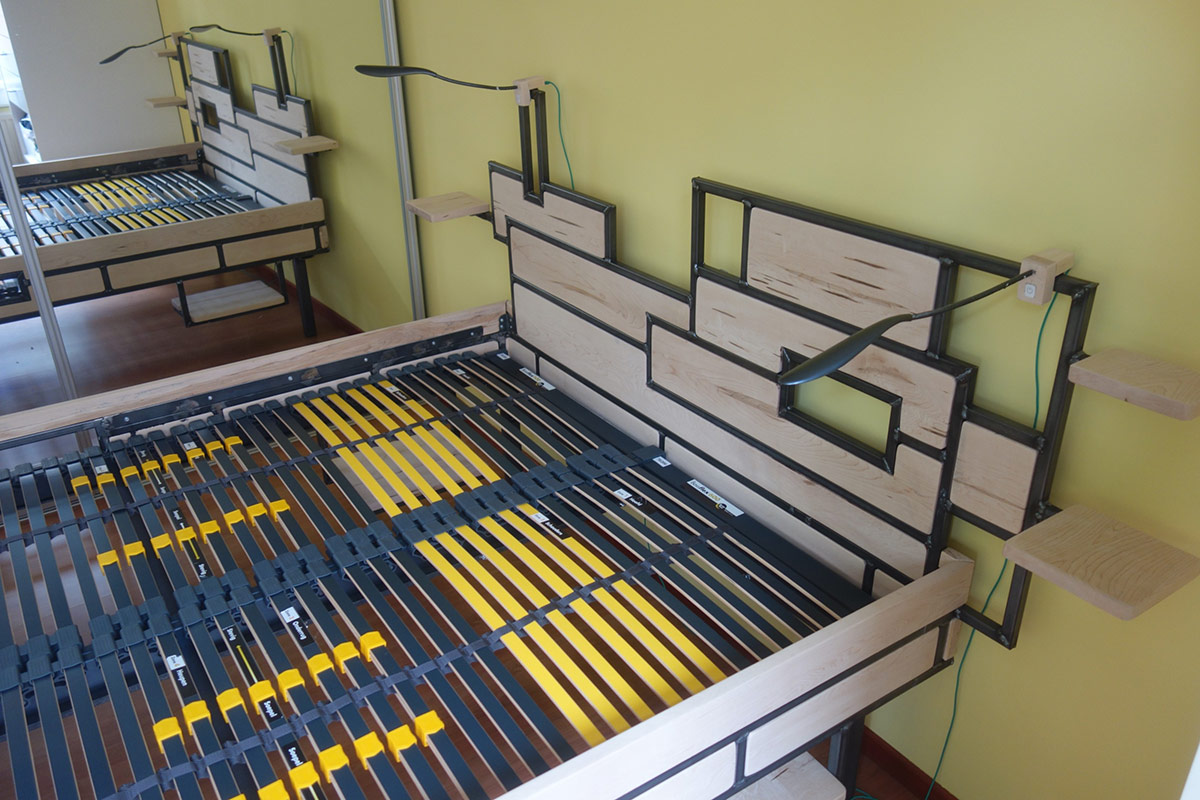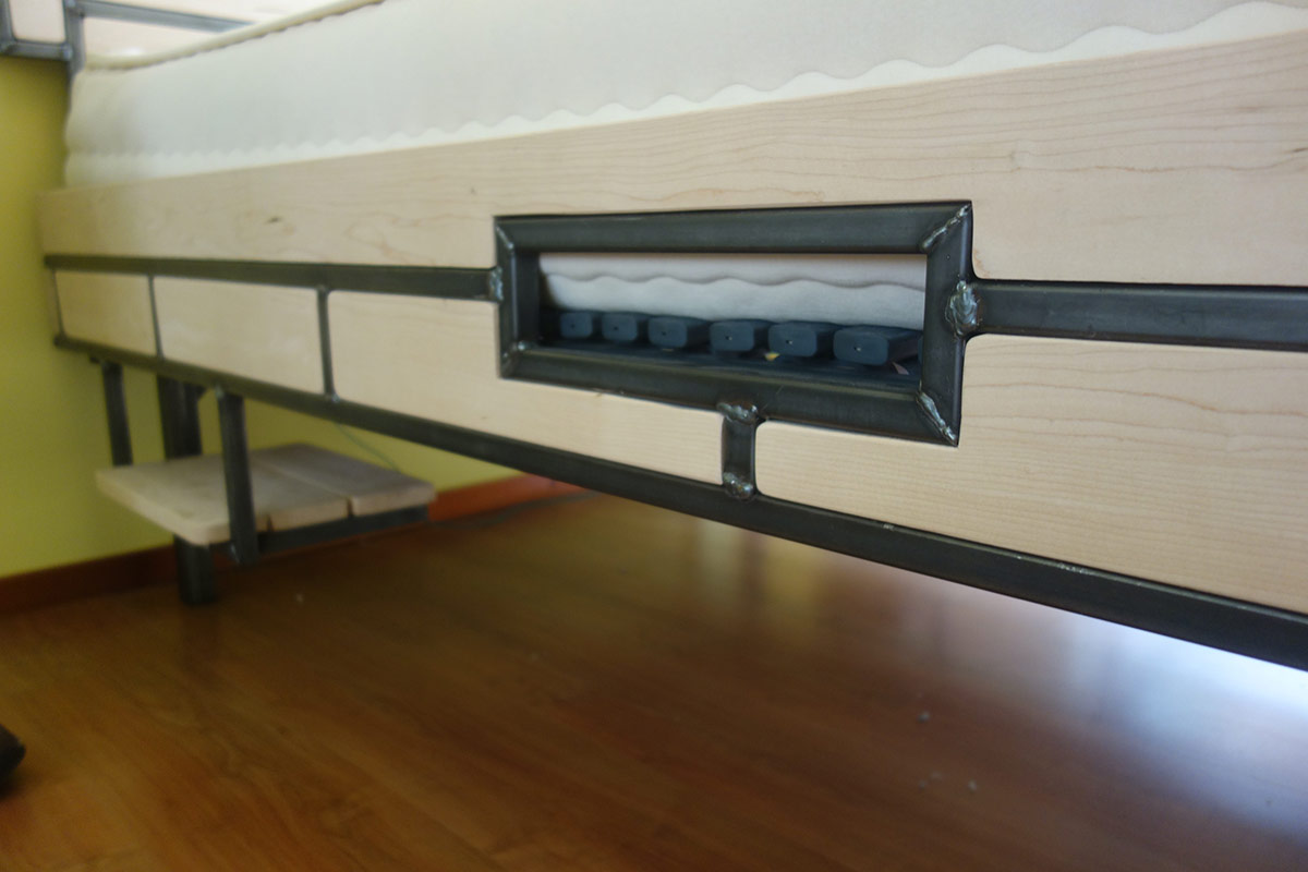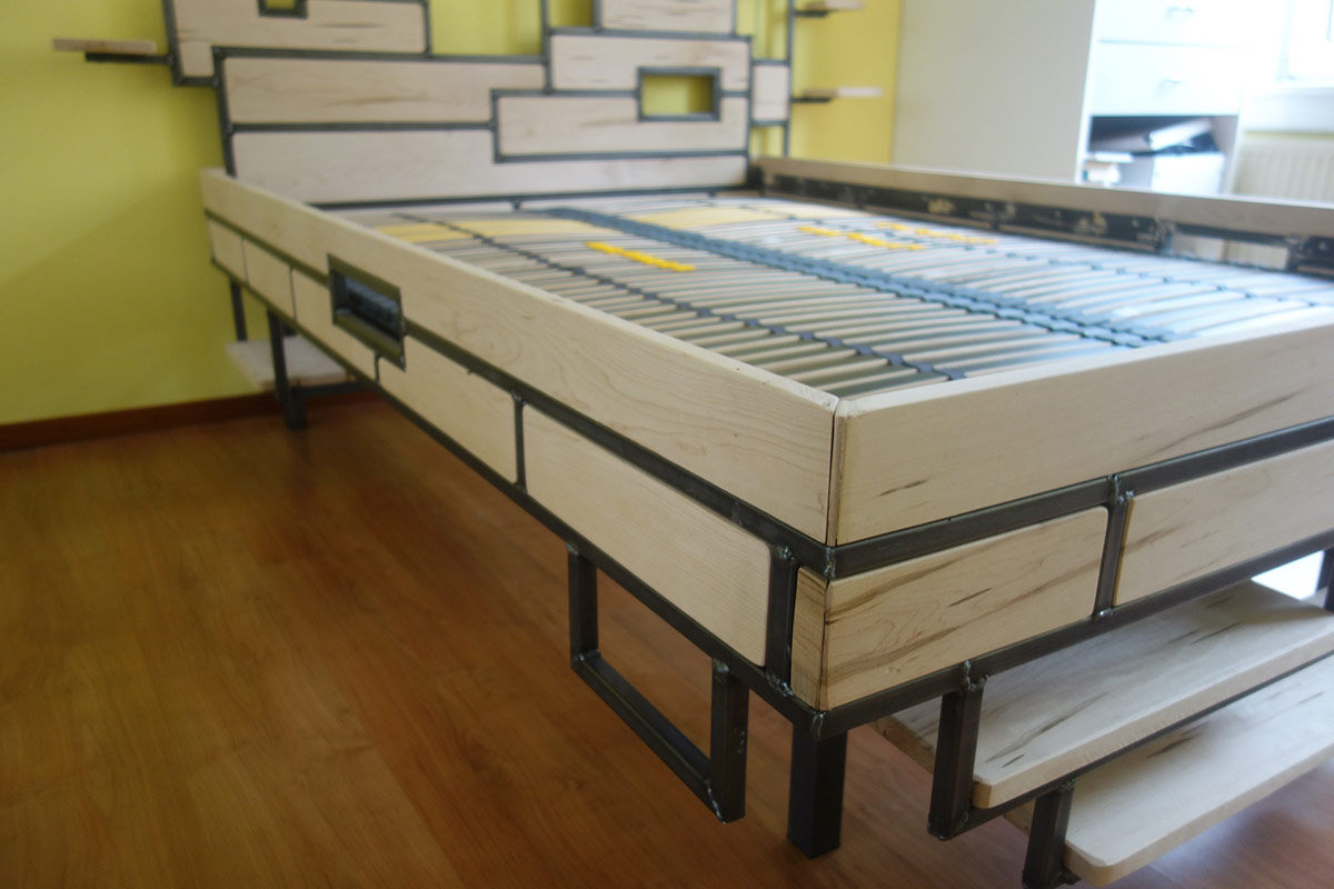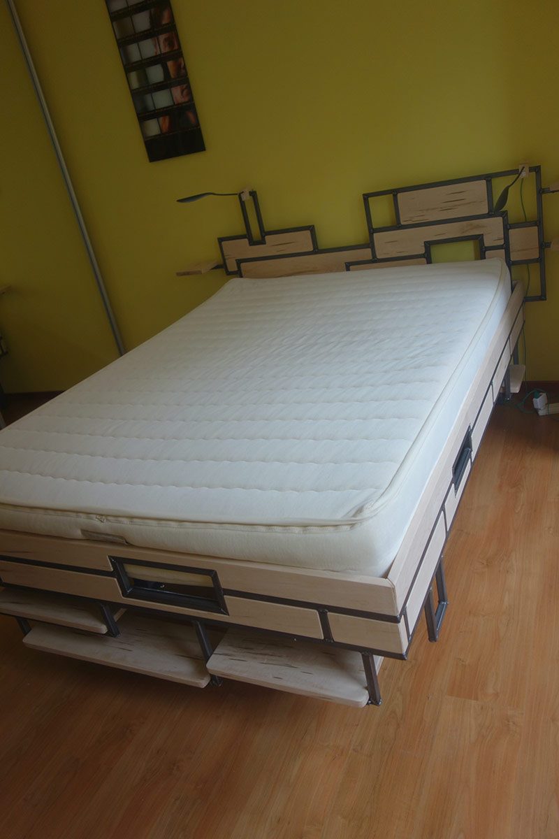 Op verzoek, ontwerp en bouw bed met hoge instap en boekenplanken.
