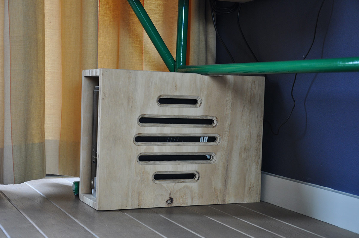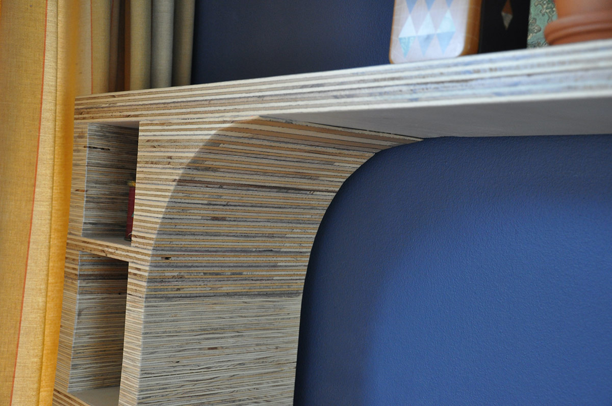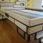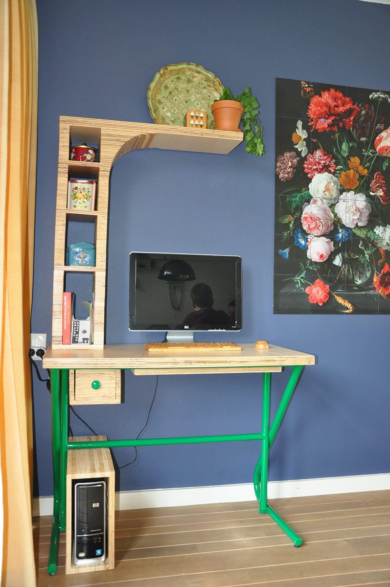 Klassiek lessenaar onderstel met gestapelde multiplex opbouw.