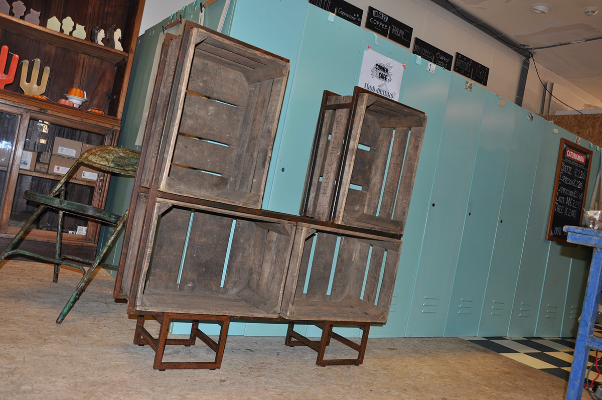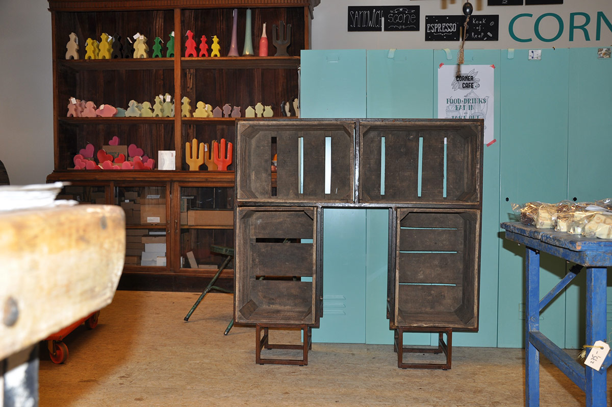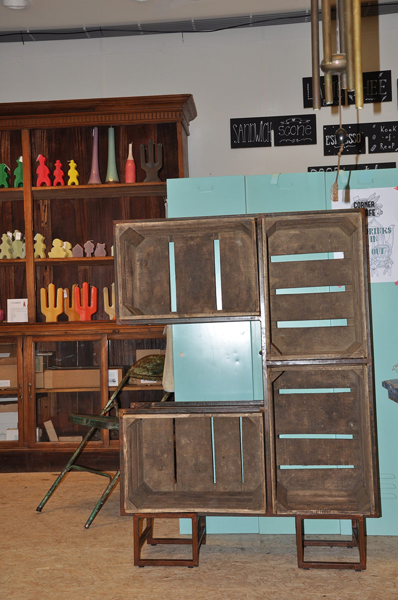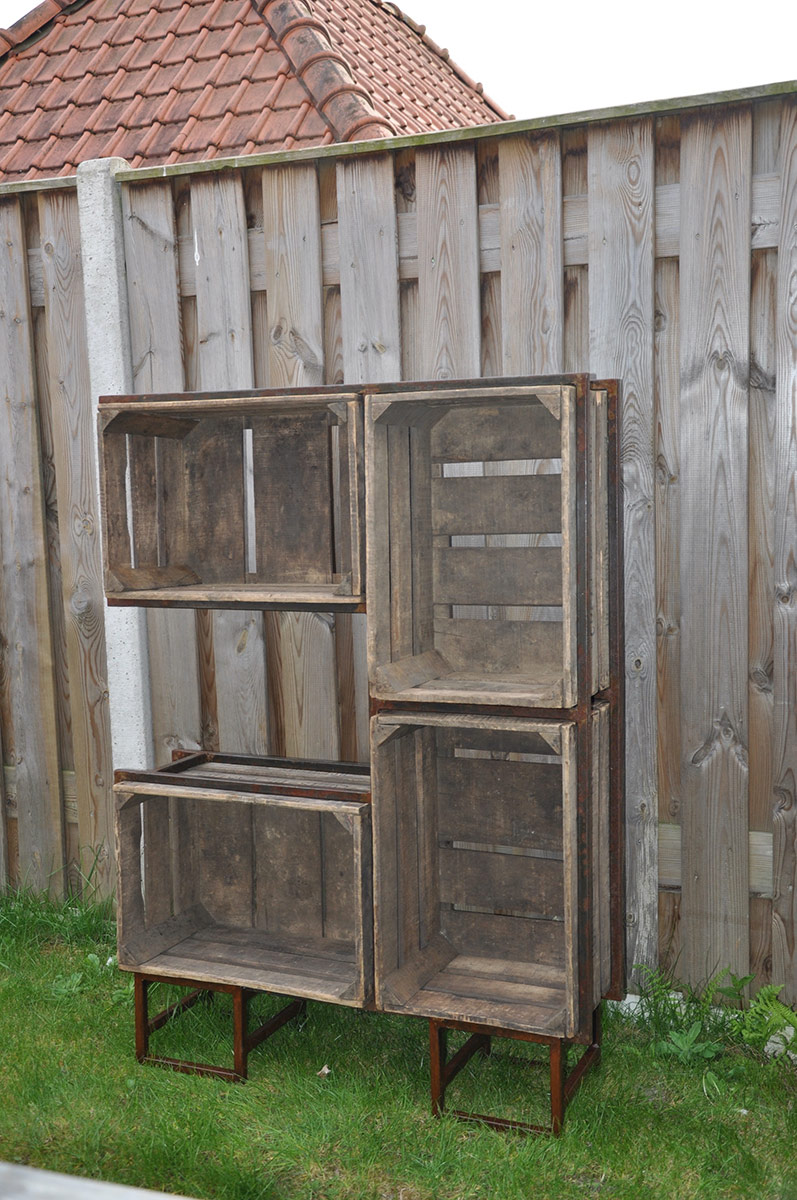 Kast met 4 fruitkisten, die op 4 verschillende manieren kan staan.