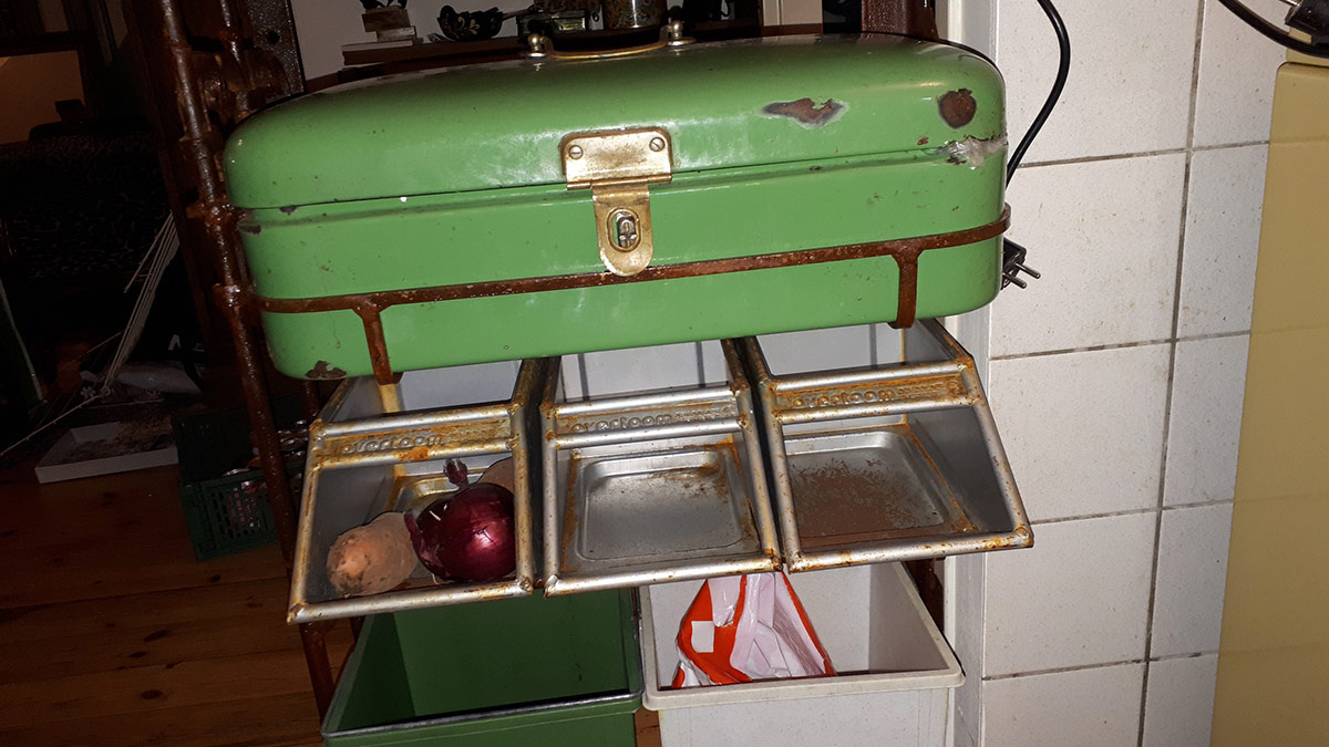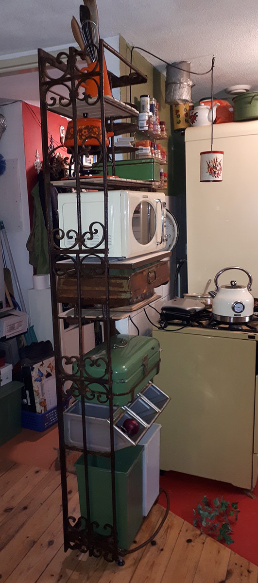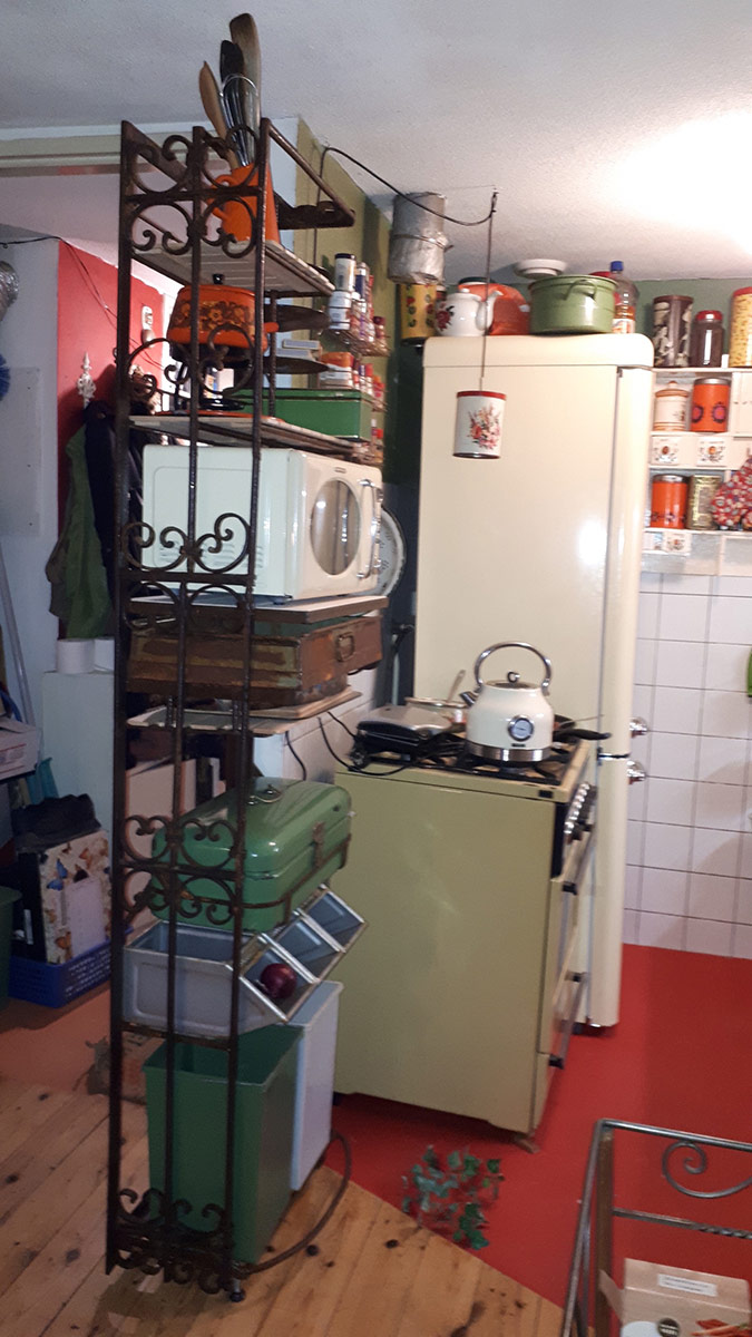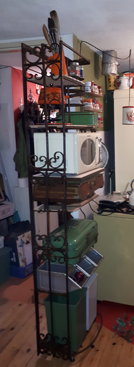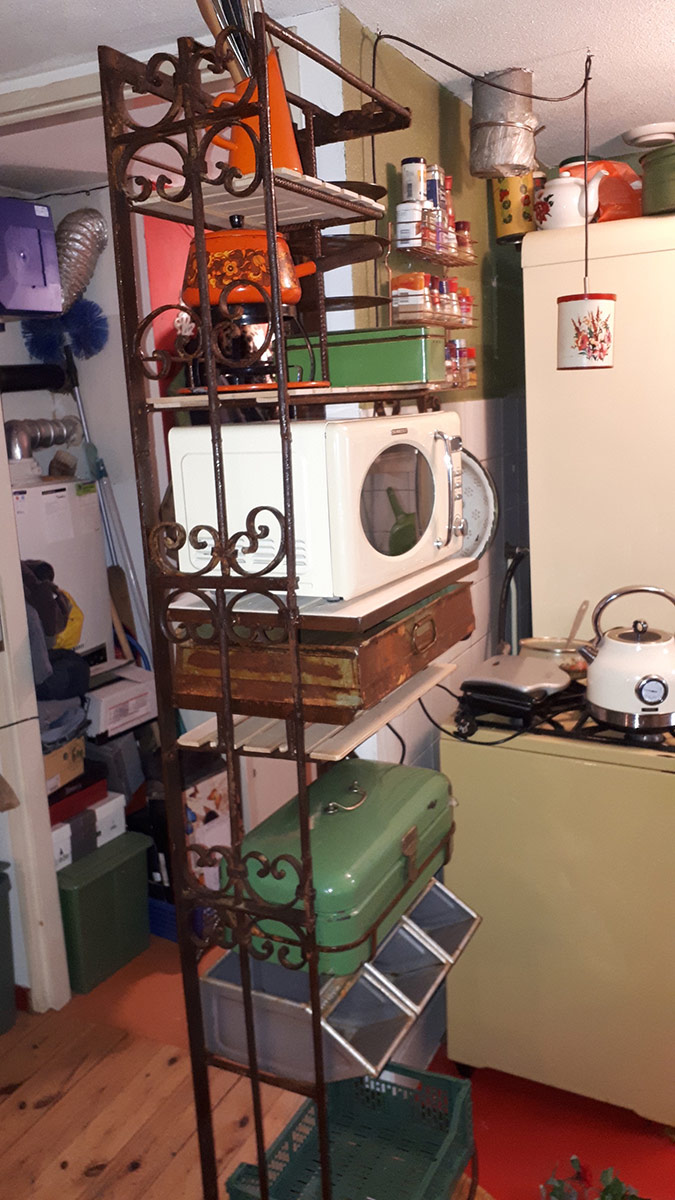 Opbergrekje voor in de keuken, vintage en maatwerk.