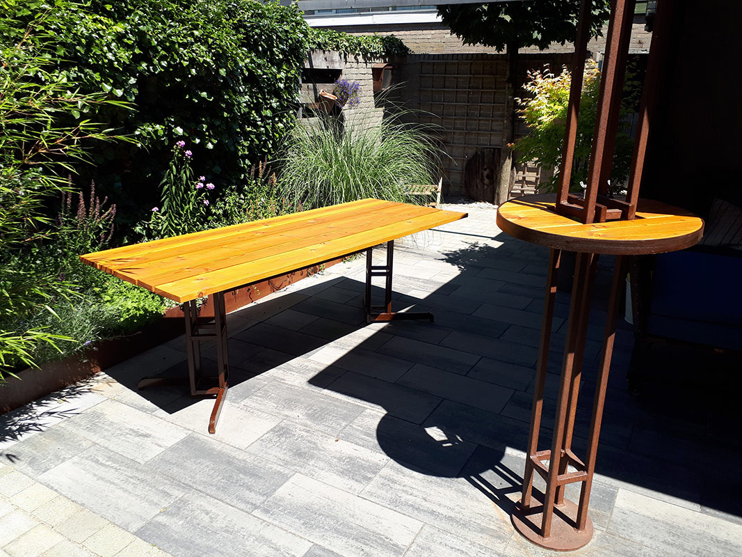 Grote tuintafel en kleine hangtafel, passend bij “Overkapping-2017”